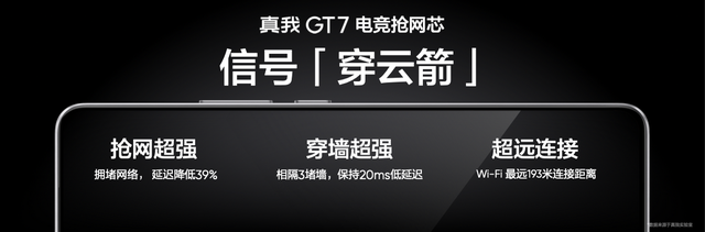 穩定的游戲體驗離不開穩定的網絡。真我GT7首發電競搶網芯,大幅提升Wi-Fi的上下行,實現超強搶網、超強穿墻、超遠連接效果,堪稱「信號穿云箭」。針對信號死角場景,真我GT7首發AI信號追蹤技術,可自動調節天線信號方向捕捉強信號,弱信號場景下游戲時延降低12%。
