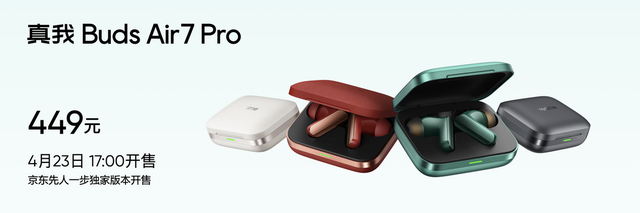 真我Buds Air7 Pro搭載同檔領先的53dB深海降噪,配合11+6mm同軸分頻雙單元超清音質,帶來降噪Pro、音質Pro的聽覺盛宴;還帶來了48小時超長續航及全新AI智慧翻譯功能,有四個配色、素皮和航空鋁兩個不同材質版本。售價449元,可享國補優惠。