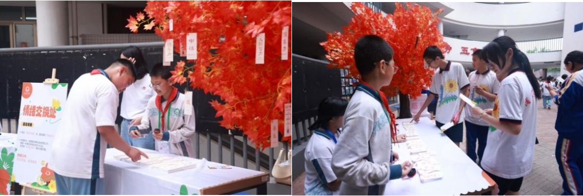 活動(dòng)攤位前排隊(duì)最長(zhǎng)的是——樹洞帳篷,走進(jìn)帳篷的同學(xué)都會(huì)發(fā)認(rèn)真翻閱上一位同學(xué)留下的暖心祝福:“雖然不認(rèn)識(shí)你,但相信你一定超棒!”“中考加油,你比自己想象的更強(qiáng)大!”傾訴與傾聽的雙向互動(dòng),讓壓力釋放,讓善意流動(dòng)。