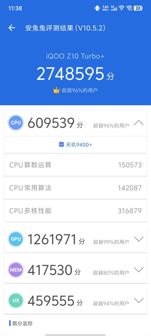 先看性能硬數(shù)據(jù):安兔兔實(shí)測(cè)超?274萬(wàn)+分,Geekbench 6?單核約?2641、多核?8273,妥妥的第一梯隊(duì)水平,這成績(jī)也實(shí)實(shí)在在體現(xiàn)出天璣?9400+?的旗艦芯實(shí)力。
