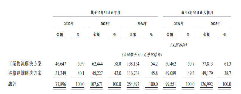 - 工業(yè)物流解決方案:聚焦核心生產(chǎn)環(huán)節(jié)及廠內(nèi)物流,實現(xiàn)物料/產(chǎn)品自動化運輸,提升生產(chǎn)效率與良品率,2024年該業(yè)務(wù)收入占比54.2%,2025年上半年占比進一步提升至61.3%;