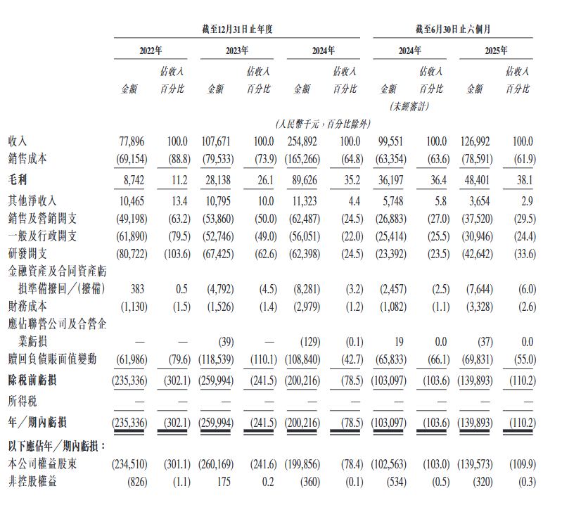 不過需注意的是,截至2025年6月30日,公司仍處于凈虧損狀態(tài),2022-2024年經(jīng)調(diào)整凈虧損分別為1.629億元、1.314億元、0.812億元,2025年上半年經(jīng)調(diào)整凈虧損0.646億元,主要因持續(xù)投入研發(fā)及市場拓展。截至2025年6月30日,公司流動負(fù)債凈額為15.62億元,負(fù)債凈額15.43億元,主要受“贖回負(fù)債”賬面變動影響。