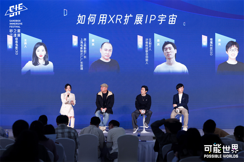 未來敘事峰會的最后一場圓桌對話由極客電影CEO李東東主持,三位嘉賓分別為上海電影制片廠廠長助理、原上美影副廠長陳波,沙核科技聯合創始人、XR制片人周旭東,維魔科技CEO范帆。四位嘉賓圍繞「如何用XR擴展IP宇宙」進行了熱烈探討。