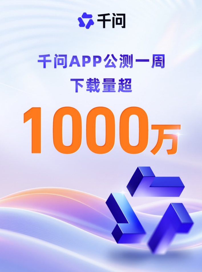 速途網11月24日消息(報道:李楠)今日,阿里旗下的AI助手千問App公測一周,下載量已突破1000萬次,超越ChatGPT、Sora、DeepSeek成為史上增長最快的AI應用。