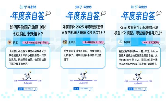 在 AI 席卷的年代,人類經(jīng)驗依舊構(gòu)成世界的核心參考。除6位領(lǐng)答人分享勾勒出他們的2025年真實圖景之外,更多的知乎答主也加入這場問答之中,不同領(lǐng)域、不同人生的個體在這里相遇共鳴。同“真實”之問同步開啟的是,宇樹科技創(chuàng)始人王興興、《浪浪山小妖怪》導(dǎo)演於水、KIMI研發(fā)工程師蘇劍林等十位知乎答主過去一年,憑借其真誠的表達(dá)、深刻的思考被評定為“年度親自答”,這些聲音成為2025年社區(qū)真實表達(dá)的重要注腳。